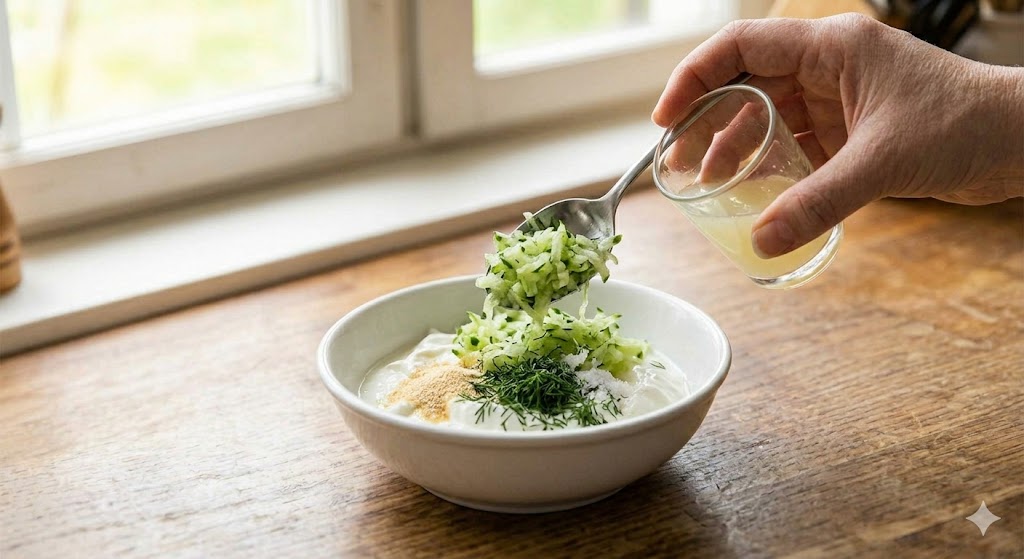 白酱:❤️ 希腊酸奶❤️ 磨碎的黄瓜(挤干水分)❤️ 莳萝❤️ 柠檬汁❤️ 大蒜粉❤️ 盐